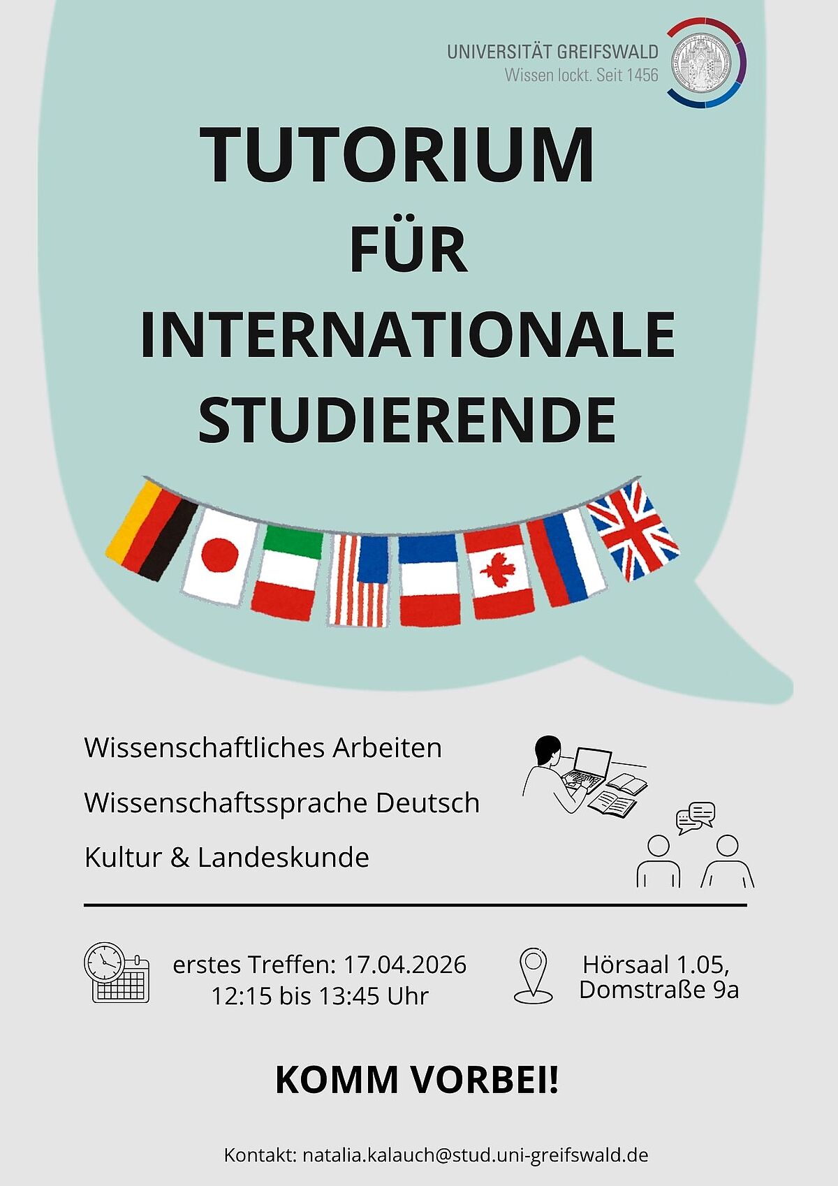 Wir möchten internationale Studierende der Universität Greifswald herzlich dazu einladen, an diesem Tutorium teilzunehmen!