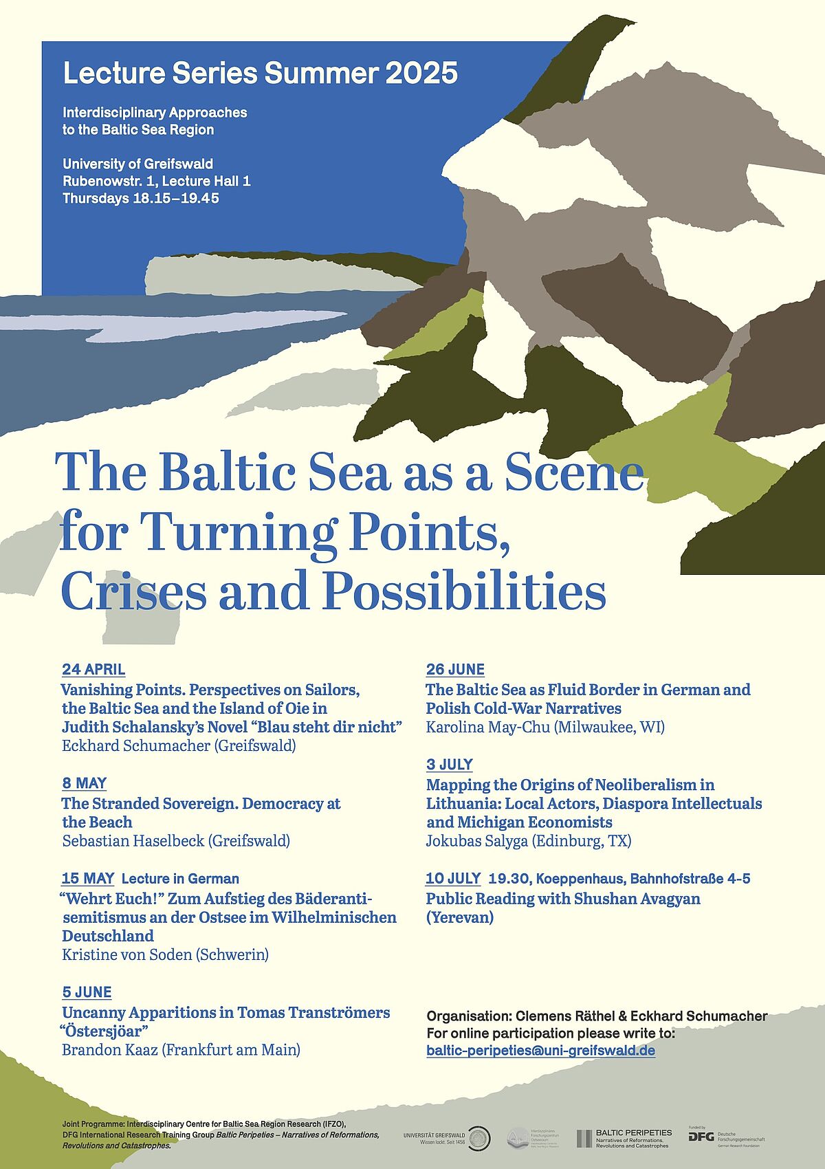 Vortrag im Rahmen der Lecture Series Summer 2025 – Interdisciplinary Approaches to the Baltic Sea Region, organisiert von Prof. Dr. Clemens Räthel & Prof. Dr. Eckhard Schumacher als eine Veranstaltung der DFG International Research Training Group Baltic Peripeties – Narratives of Reformations, Revolutions and Catastrophes. Vortragssprache ist Englisch.
